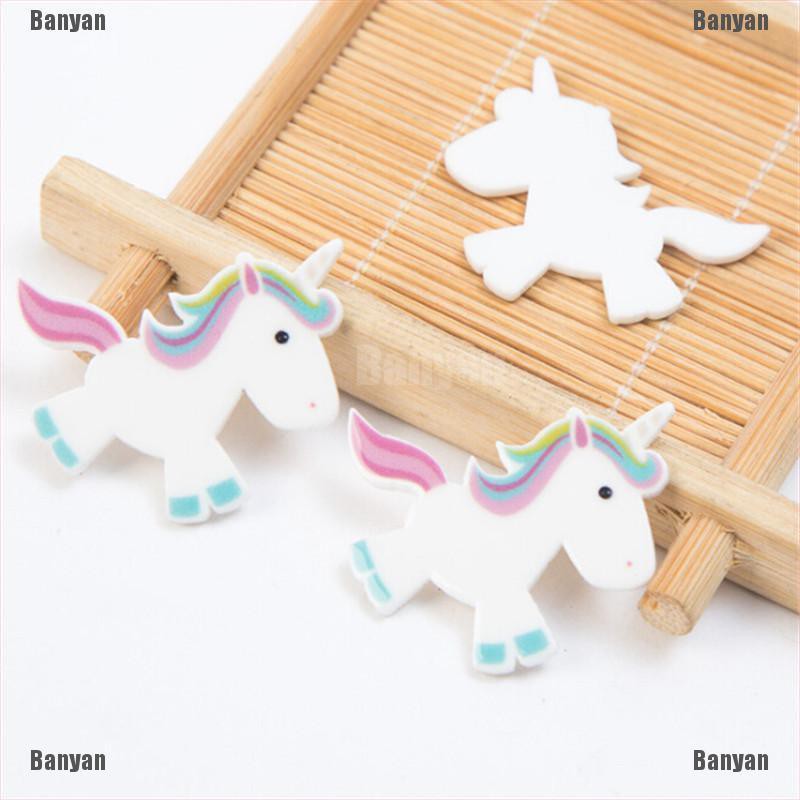 10 Pcs Resin Mengkilap Cabochon Art Pasokan Dekorasi Unicorn Charm