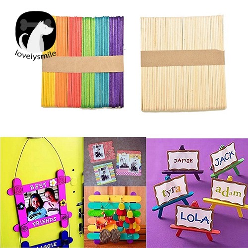 Compare 50pcs Wooden Colorful Popsicle Sticks For Kids Diy Crafts