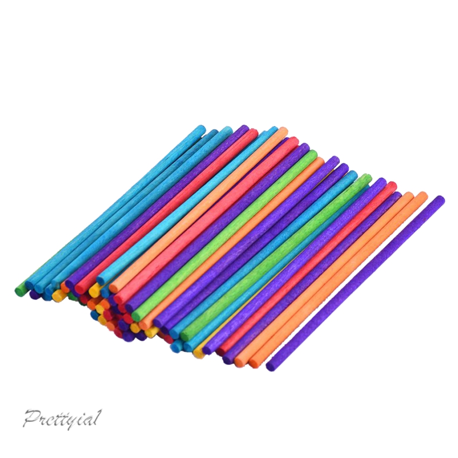 50pc Colorful Round Wooden Craft Ice Cream Sticks Popsicle Sticks
