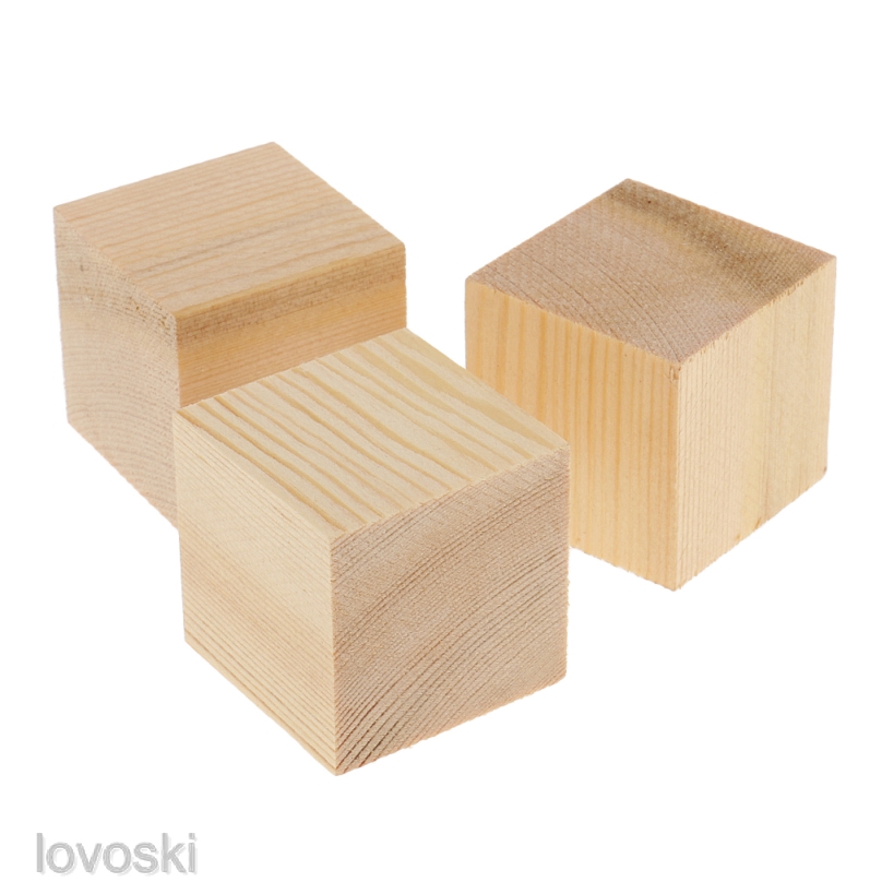 Natural Wooden Cube Blocks Unfinished Wood Shapes For Diy Crafts