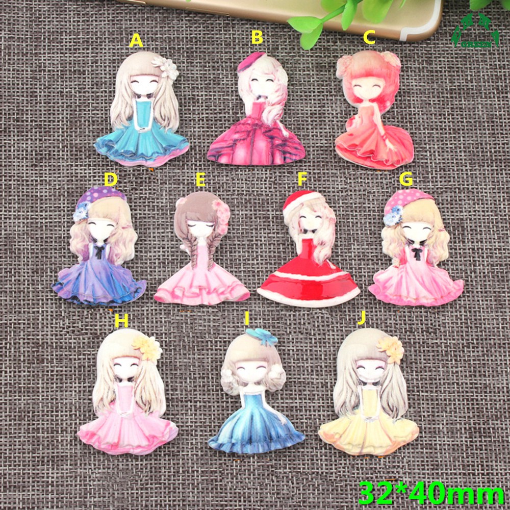 Cartoon Girls Resin Cabochon Flatback Princess Slime Beads Charm